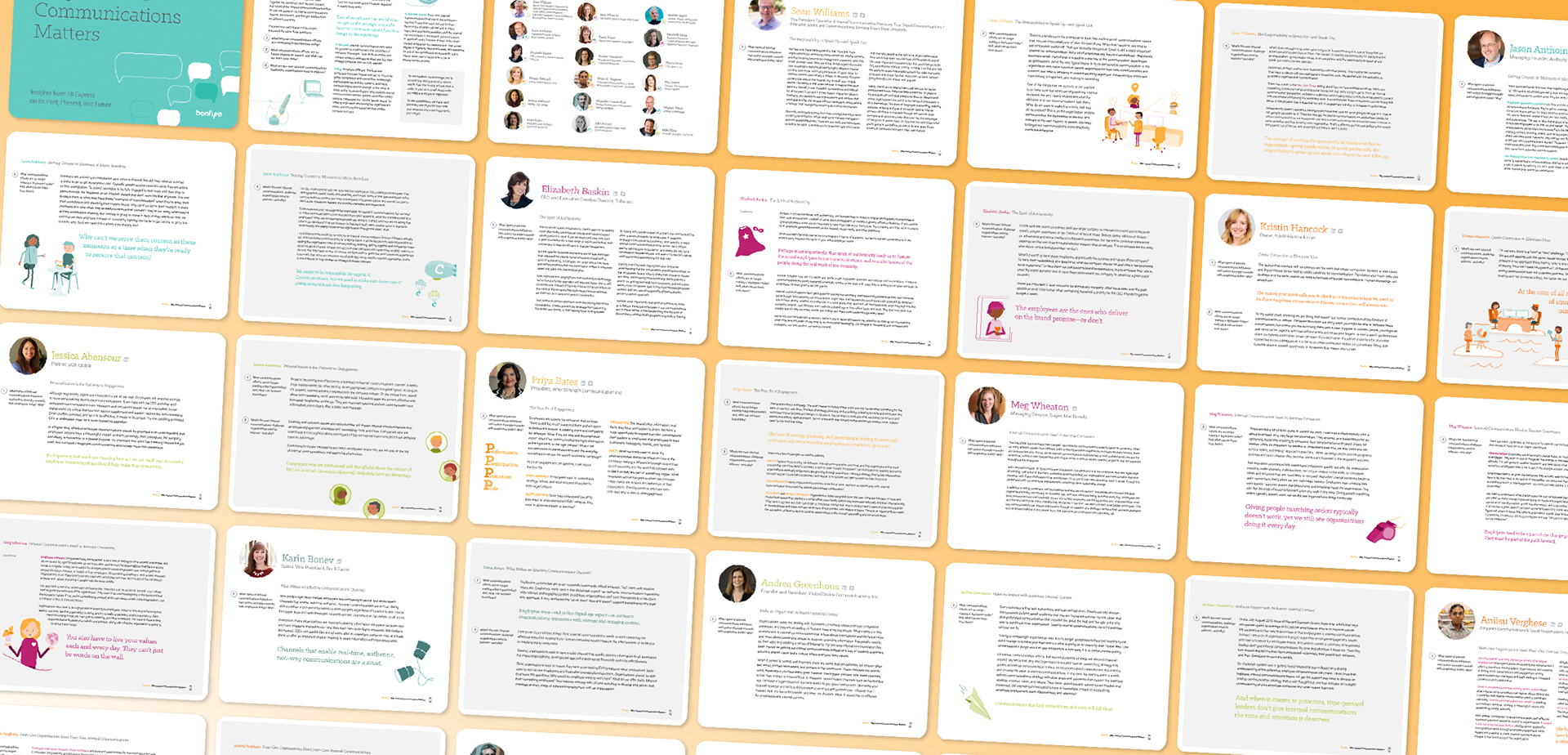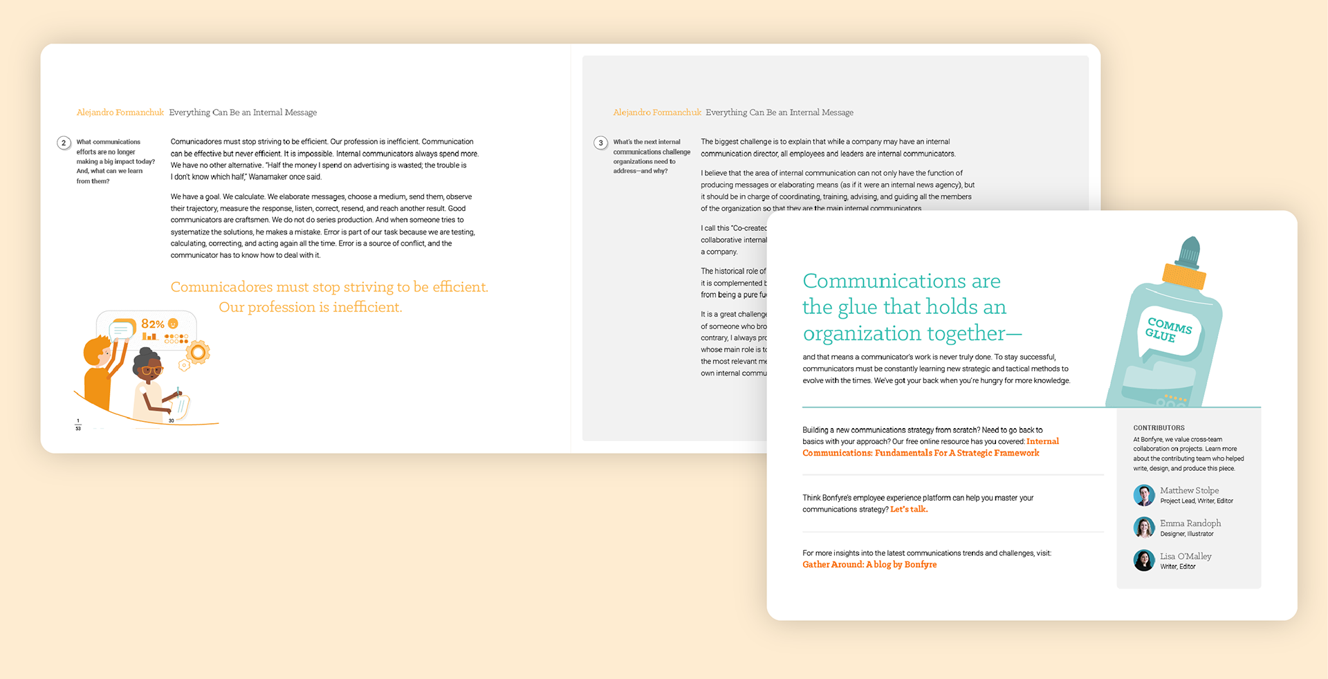 Design a 56-page e-book of 18 written interviews conducted by internal copywriter, Matthew Stolpe.